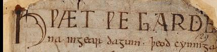 Let’s look at the opening lines to Beowulf, from the manuscript image above: