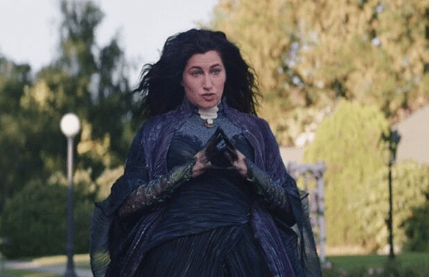 Wanda is powerful and terrifying in this series, but she doesn’t start as an antagonist. Her grief is nuanced and deep, including the loss of her husband, her brother, her life, and her sons. Her grief for Vision’s loss had turned her to create Westview, a shocking twist that comes mid way through the series. It’s Wanda’s magic that stole all the people that make up Westview, putting them into characterizations that fit the idyllic sitcom-perfect home life Wanda is seeking to claim. This blatant misuse of power could be forgivable. The show takes pains to represent all aspects of Wanda, including not only her PTSD and grief, but the clear way she struggles with other mental illnesses related to depression. It’s brilliant and it gives her such power. Her struggle with Agatha Harkness at the end, and the ensuing slip into the madness of the Darkhold, however? Reductive at best, misogynistic at worst. Let me illustrate: